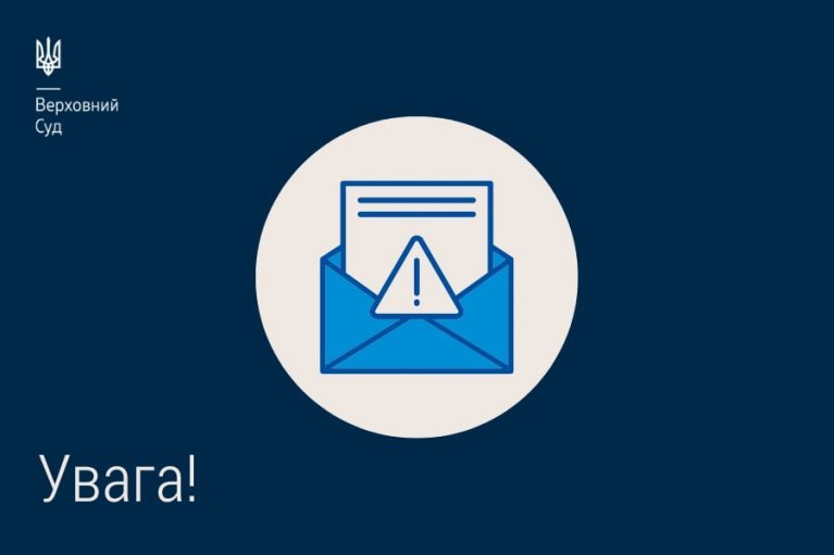 Верховним Судом зафіксовані випадки розсилання фішингових електронних листів, які імітують повідомлення Верховного Суду про виклик у судове засідання у кримінальному провадженні, зокрема з фальшивої електронної адреси gov@supreme.court.gov.ua, та можуть містити, серед іншого, прохання перейти за запропонованими в листі посиланнями для ознайомлення з інформацією, завантаження спеціального програмного забезпечення, можуть містити прикріплені документи для завантаження тощо.
